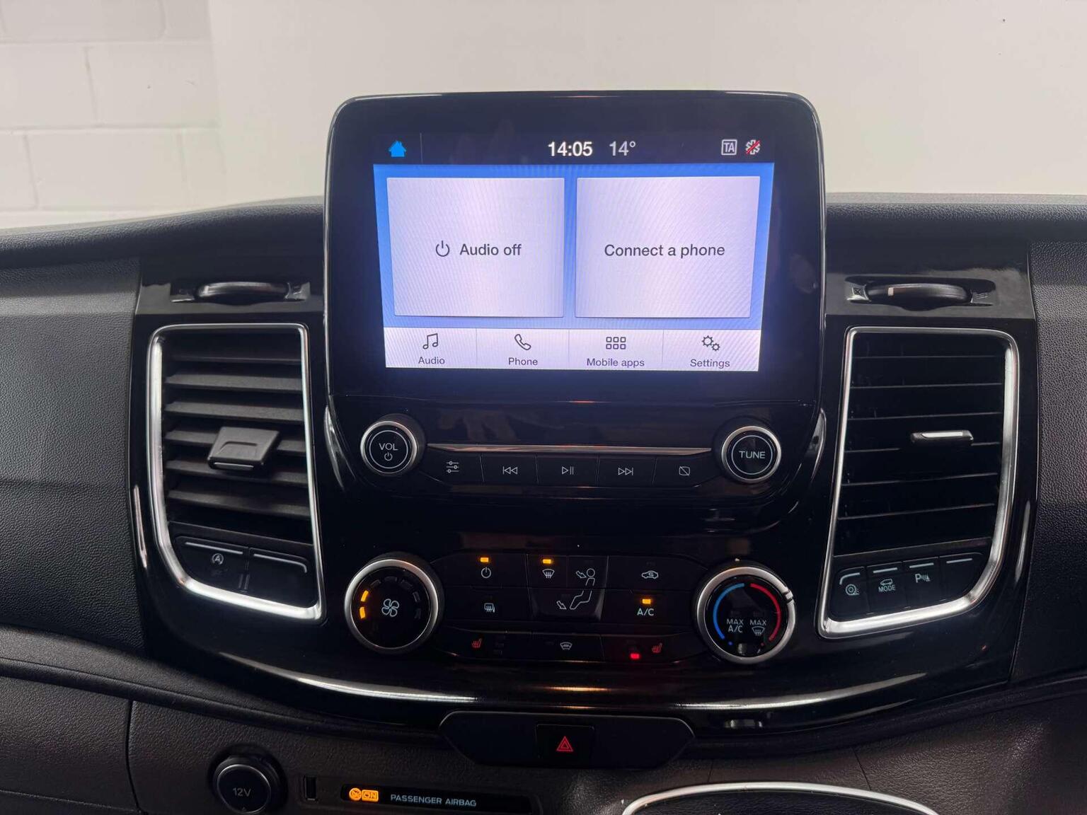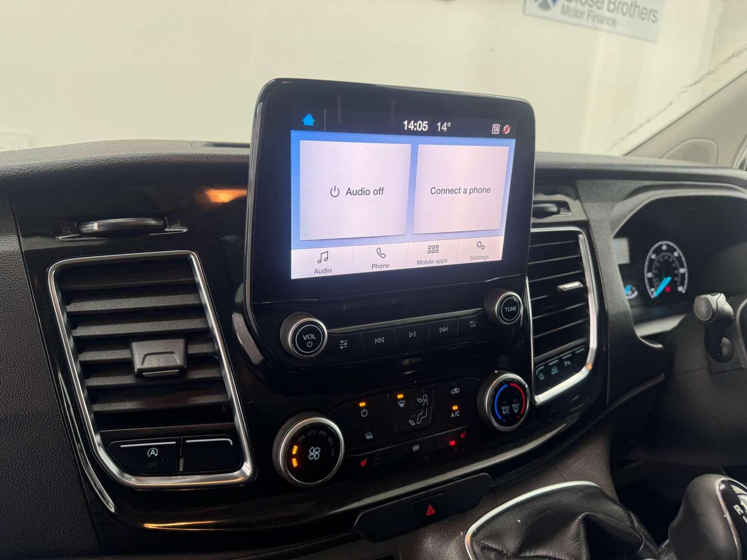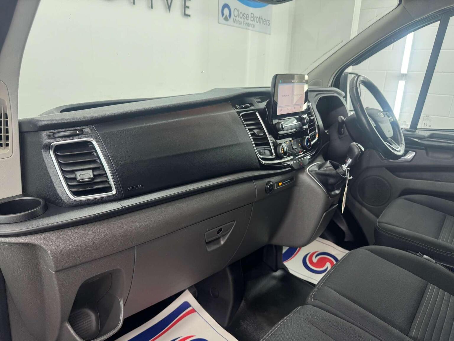 Trip Computer, Water in Fuel Filter with Sensor, Vehicle Maintenance Monitor, Two 12V Power Socket, Trailer Sway Control, Traction Control - TC, Thatcham Category 1 Alarm, Sunvisors - Illumination of Driver and Passenger, Sunglasses Holder in Roof Stowage, Steering Wheel Controls, Steering Wheel - Leather-Trimmed, Steering Column - Rake and Reach Adjustment, Spare Wheel - Conventional, Side Wind Mitigation, Shift Indicator Light, Selectable Drive Mode, Colour Keyed Exterior Pack, Halogen Headlights with Courtesy Delay, Gear Knob - Leather, Front Manual Air Conditioning, Ford Eco Mode - Driver Information System, Electrically-Operated Front Windows with One Touch Drivers, Easy Clean Load Floor, ESC - Electronic Stability Programme, EBA - Emergency Brake Assist, Drivers Airbag, Door Handles - Body Colour, Cruise Control, Complete Rear Trim Board - Half Height, Halogen Projector Headlights with LED Daytime Running Lights and Adaptive Cornering Front Fog Lights, Chrome Grille with 3 Bars, Bulkhead - Full Steel with Load Through Hatch, Bodyside Mouldings - Body Colour, Body Colour Rear Bumper, Body Colour Front Bumper and Mirror Housing, Automatic Headlights with Rain Sensing Wipers, Automatic Headlights - Follow Me Home, Airbag - Front Passenger, ABS - Anti-lock Braking System, 8 Way Adjustable Drivers Seat with Armrest, 2nd Remote Key Fob, Moulded Load Floor Liner, Seats - Dual Passenger with Underseat Stowage, Seat Pack 25, Remote Central Door Locking with Deadlocks, Rear Doors - 180° Opening - Unglazed - Positive Stop at 90°, RSC - Roll Stability Control, Quickclear Heated Windscreen, Power Foldable and Heated Mirrors, Power Door Deadlocks - Shielded, Power Assisted Steering, Passenger Side Sliding Load Door with Track Cover, Parking Aid - Front and Rear with Front Fog Lamps, 16in Alloy Wheels, Mini Overhead Console, Lockable Glovebox, Load Compartment - Tie Down Loops x8, Load Compartment - Protection Kit, Light Tinted Glass - ilo Privacy Glass, LED Load Compartment Light, Interior Grab Handles - Front, ICE Pack 21 - SYNC3 Audio, Hill Start Assist, Heavy Duty Alternator